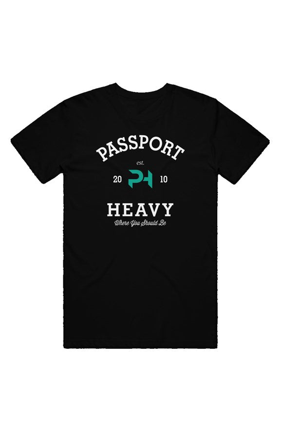 This modern take on a classic style commemorates Passport Heavy's history and growth. This premium tee runs on the thin side for those looking to keep cool during those hot summer days. Created with durability in mind, it features a taped neck and shoulders, and sits comfortably.